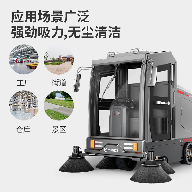 揚(yáng)子YZ-S12駕駛式掃地機(jī)配備雙吸風(fēng)電機(jī)和過載欠壓保護(hù)裝置,操作更加安全;同時(shí)使用自主研發(fā)的邊刷電機(jī)、聚氨酯實(shí)心胎和大容量垃圾桶,配件品質(zhì)更高,提升了使用性能;安裝吸塵
