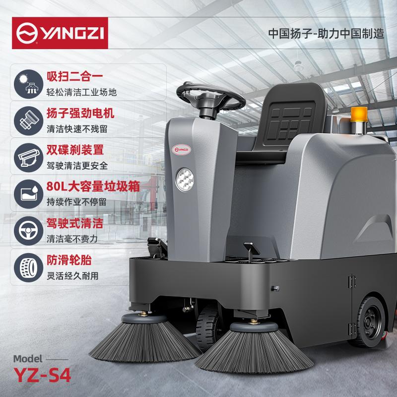 揚子YZ-S4小型駕駛式掃地機設備配備了橡膠防滑大輪;安全防水防觸充電口;前大燈防撞、防水光線強,解決了使用過程中的一些使用安全問題;噴嘴噴霧呈霧狀水花,實現了無塵清掃