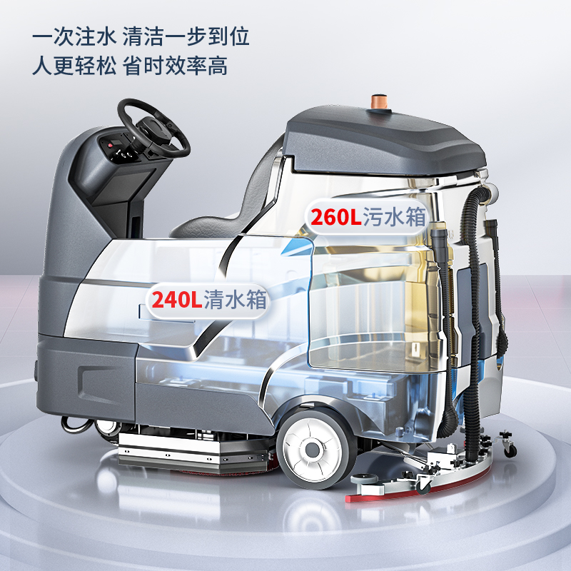 揚子X9駕駛式洗地機清洗效率可達9800㎡/h,適合在面積10000㎡的場所使用。采用“洗擦吸”三合一,清洗效果更好;設備配備大容量水箱,續航時間長,避免使用過程中需要反復傾倒污水;配備雙出水系統,一鍵式操作更加方便。