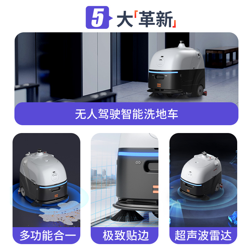 揚子智能無人洗地機YZ-SC80,AI結(jié)構(gòu)光+3D避障看得快避得準,通過超聲波和RGBD的邊界識別,可做到最近零距離貼邊