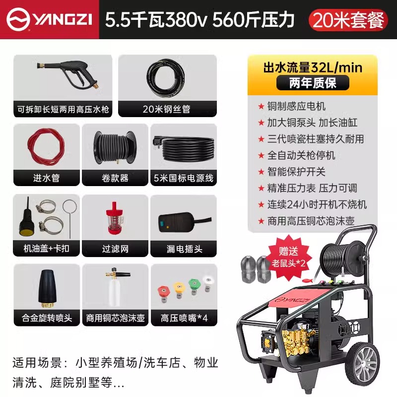 揚(yáng)子紅鋒高壓清洗機(jī)YZ-QXJ 沖洗除銹二合一 機(jī)場(chǎng)街道貨車(chē)清洗,進(jìn)口高性能AR泵,不受水源限制,突破環(huán)境限制,去銹更自由,定制高壓管結(jié)實(shí)耐用。