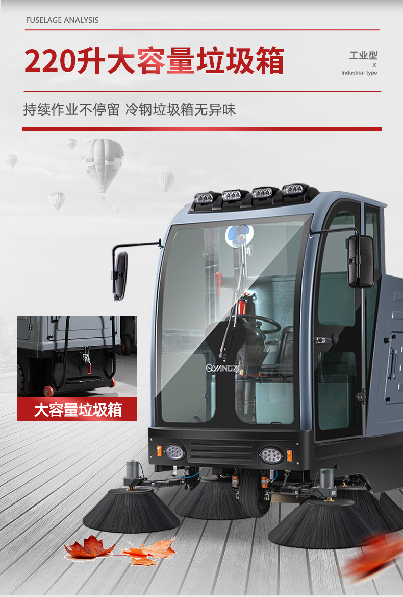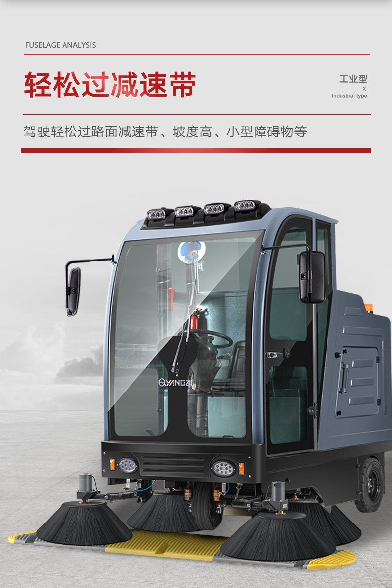 揚(yáng)子YZ-S13駕駛式掃地機(jī)使用防撞玻璃,提升安全性能,冷鋼垃圾箱設(shè)計(jì)傾倒更加方便,實(shí)現(xiàn)電動(dòng)振塵,配備液壓減震裝置,操作更加舒適;設(shè)備采用智能控制系統(tǒng),配備智能液壓升降和