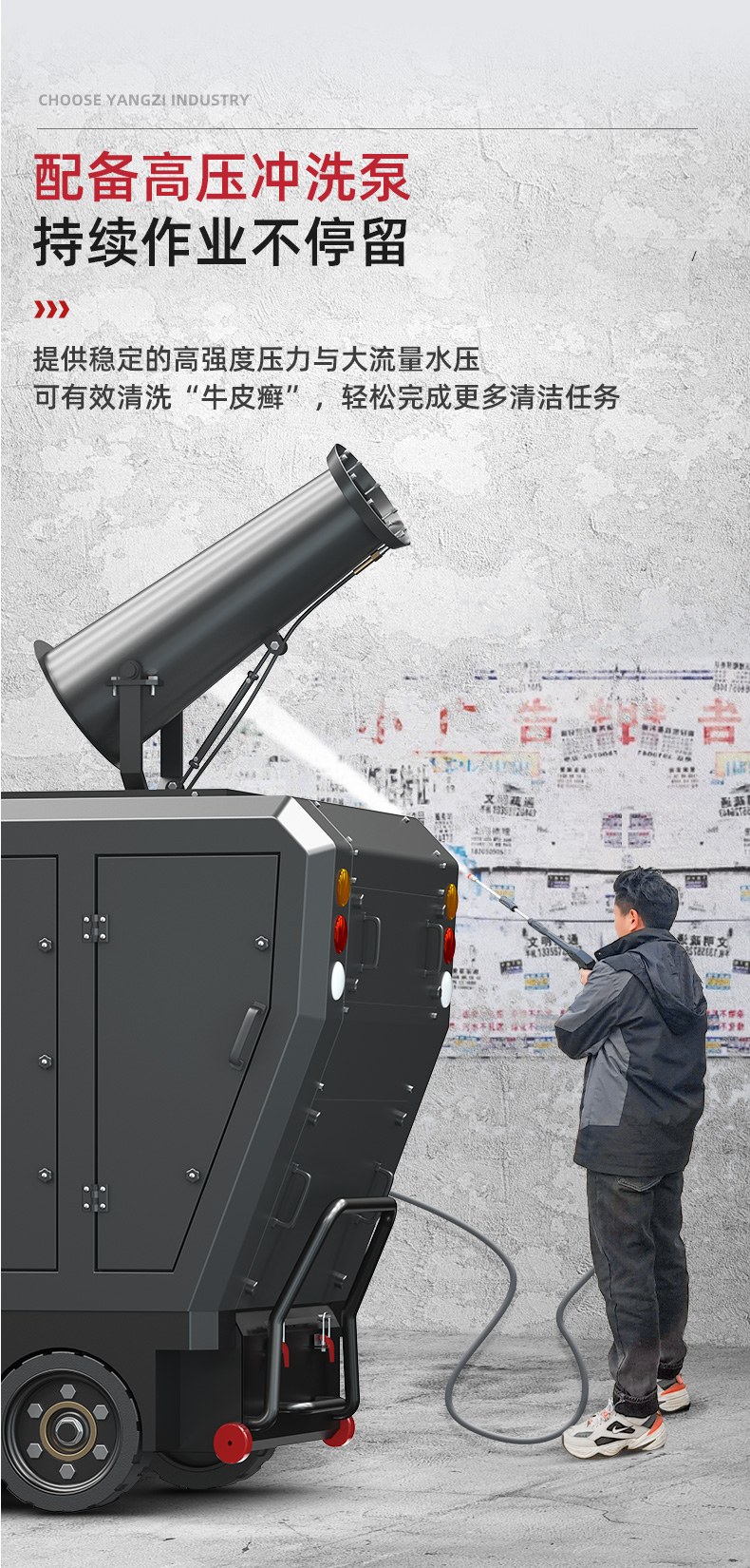 揚(yáng)子YZ-S15駕駛式掃地機(jī)清掃效率可達(dá)15000㎡/h,實(shí)現(xiàn)了掃地+吸塵+霧炮三合一的功能。靈活霧炮設(shè)計(jì),大角度噴霧可以完成水平角度350調(diào)節(jié),使用品牌電機(jī),續(xù)航能力更強(qiáng),爬坡度可以達(dá)